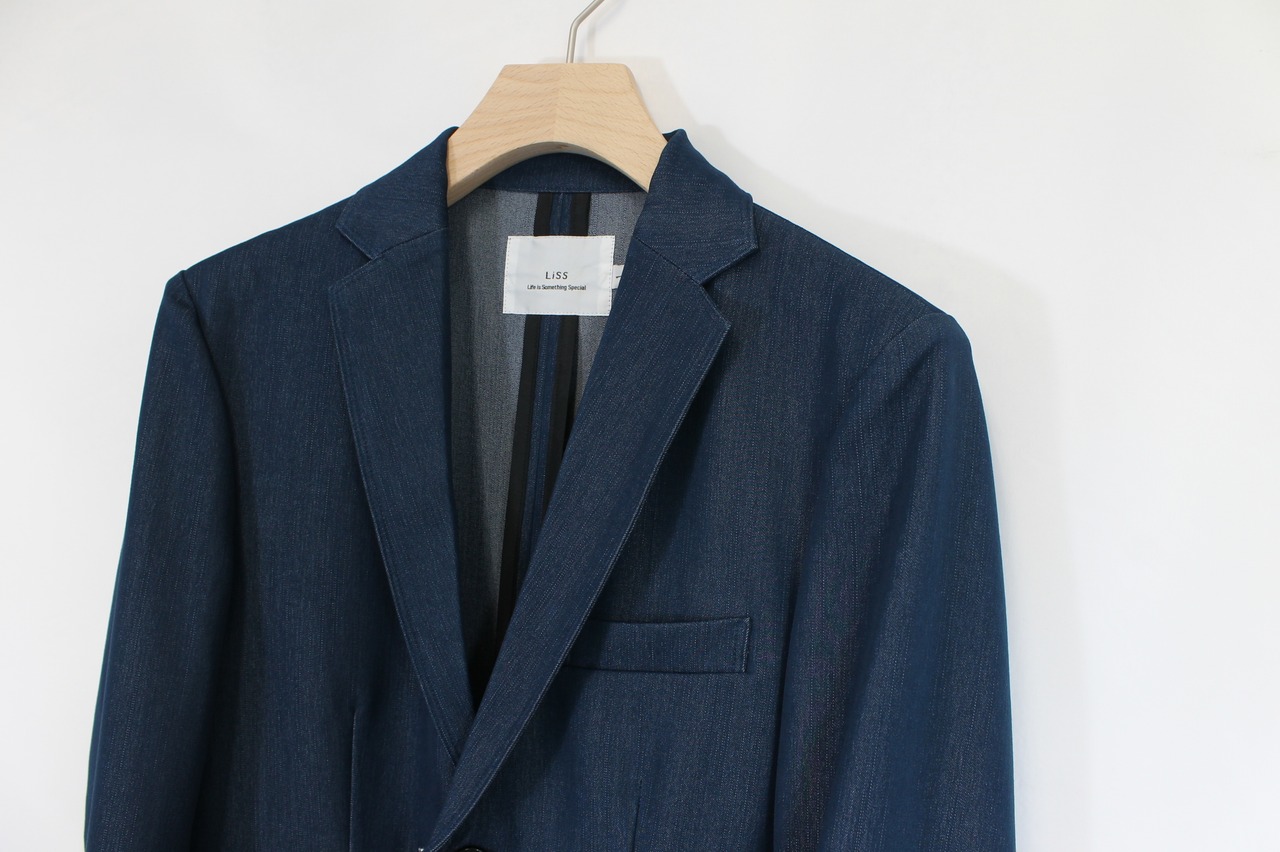 普段着の羽織りとしてだけでなくオフィスカジュアルにも適した、細身のテーラードジャケット。