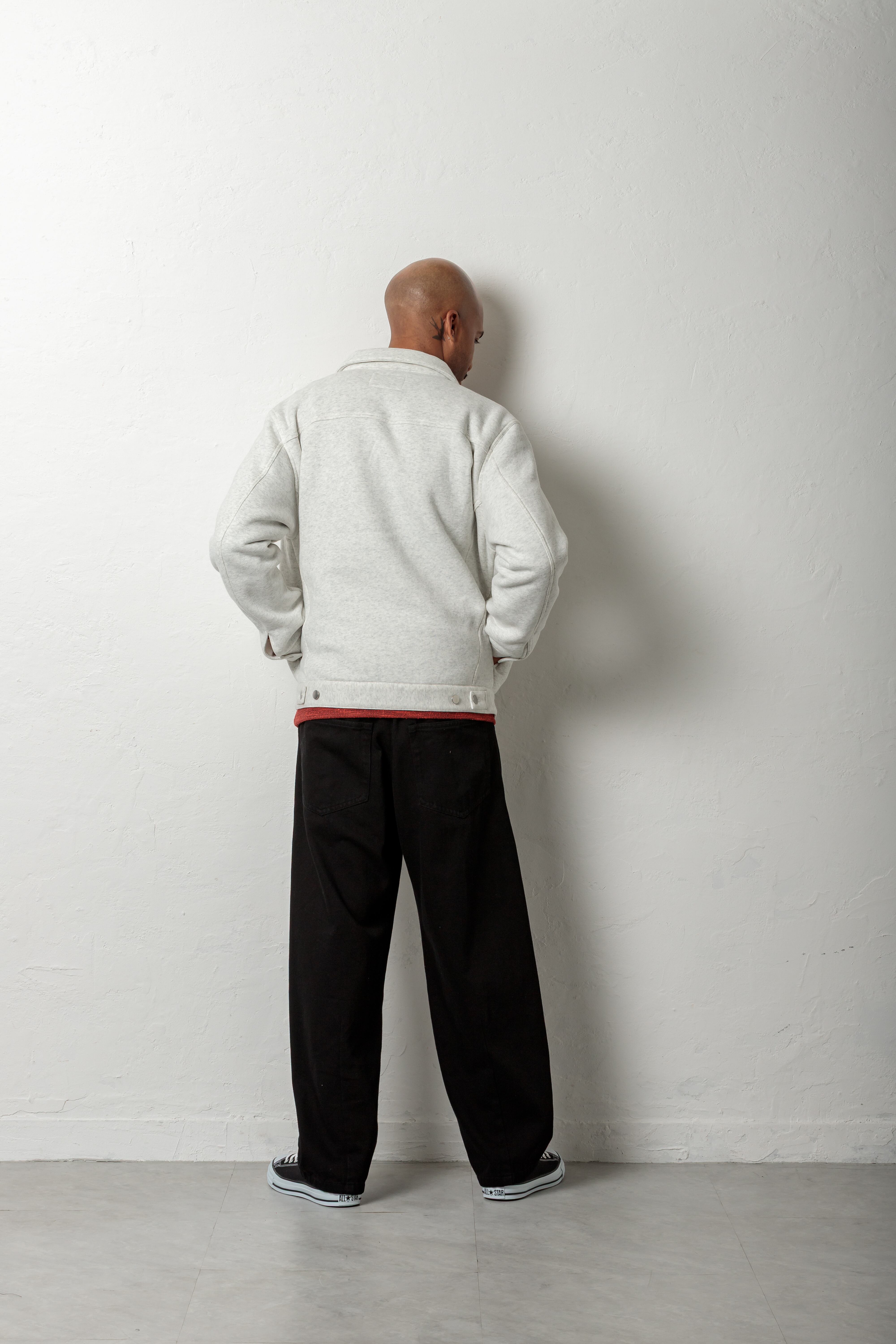 無骨なイメージのあるGジャンを、柔らかくソフトな肉感のあるスウェット素材を