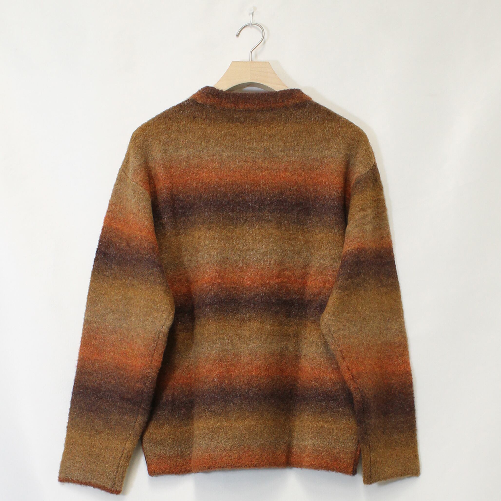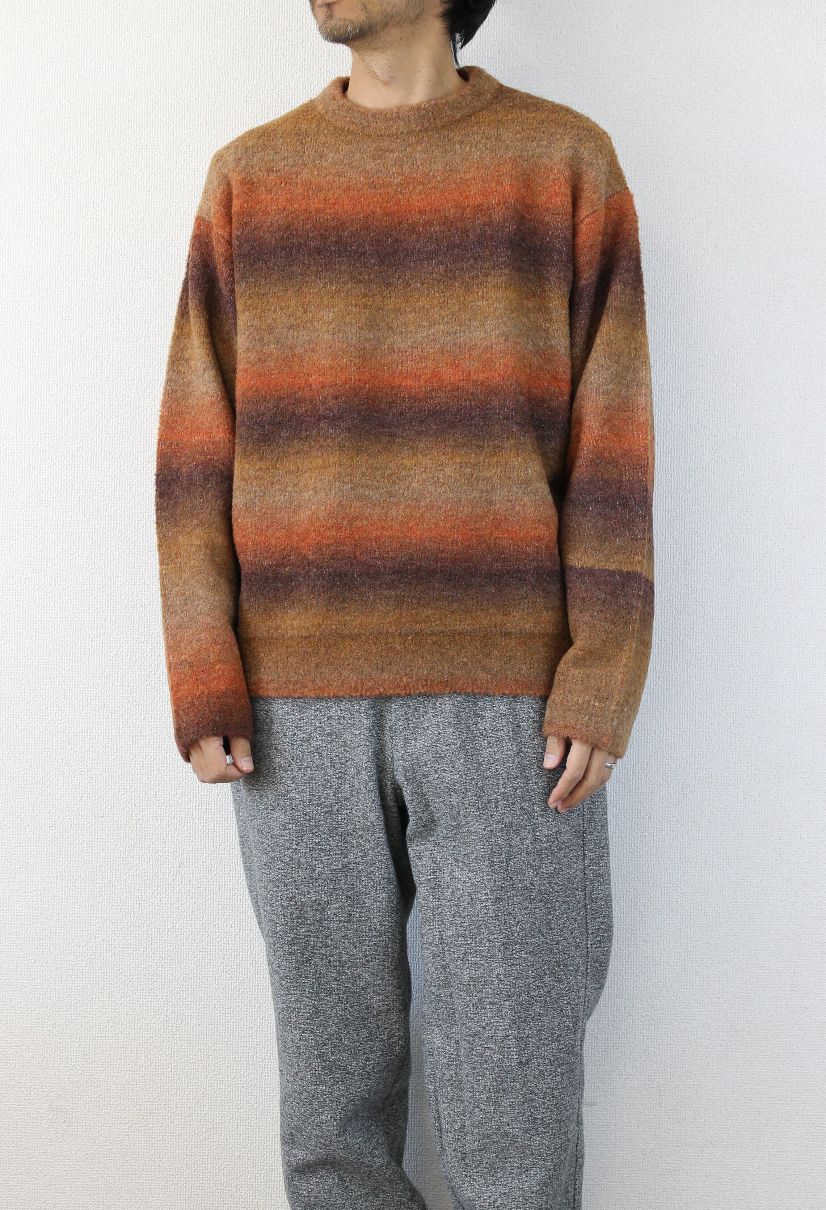 キャッチーなカラー配色でグラデーションにしたクルーネックのニット。