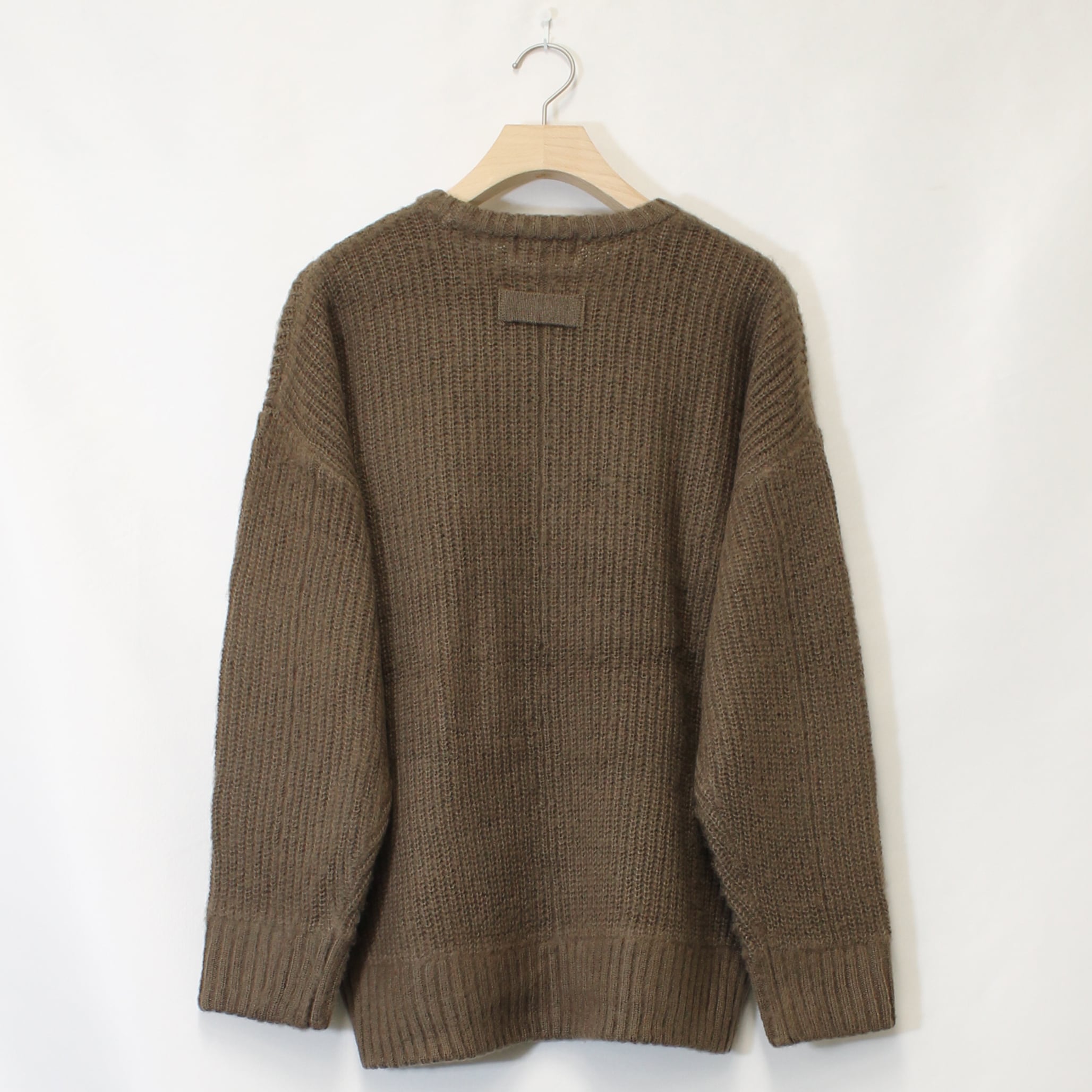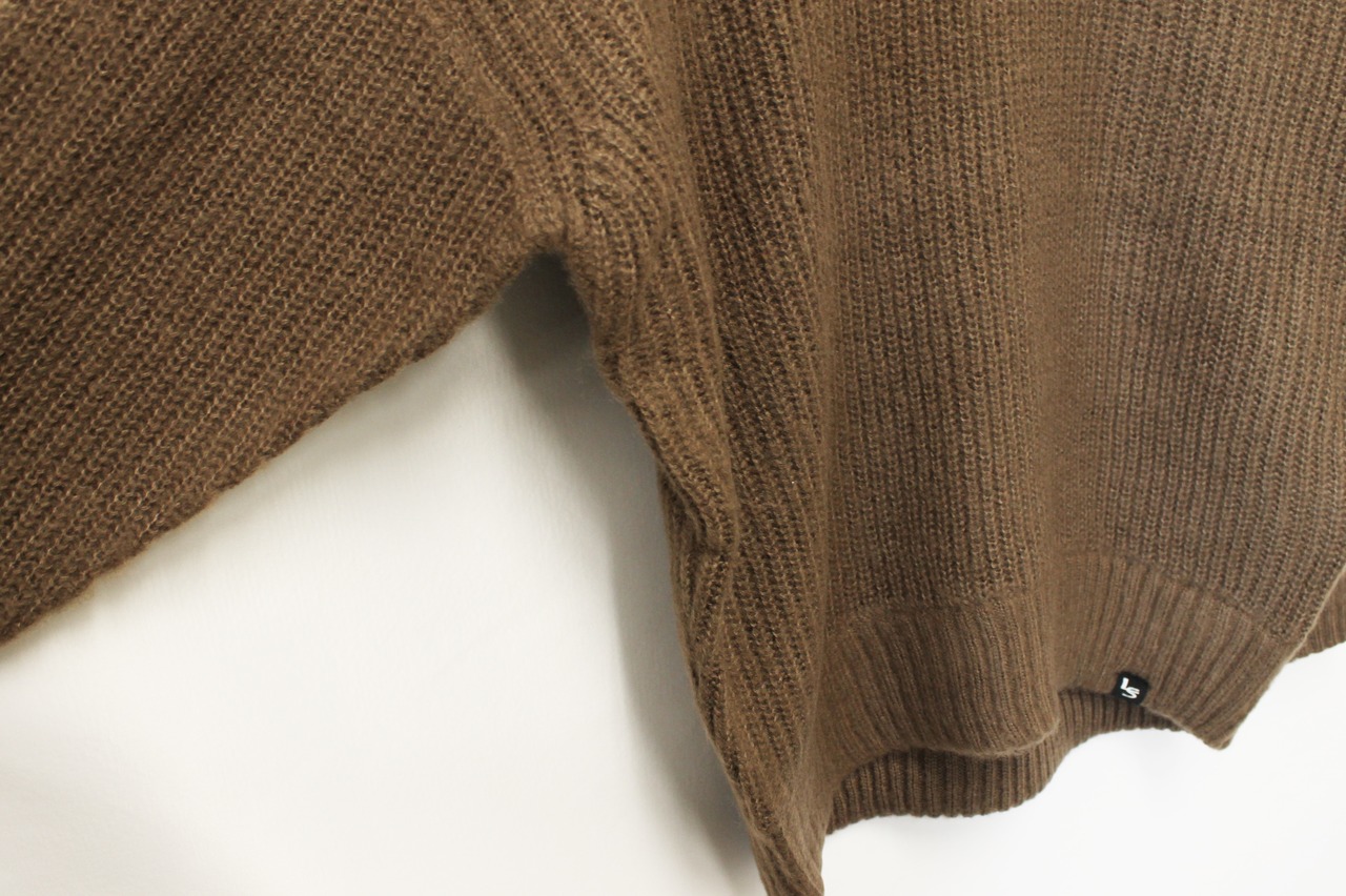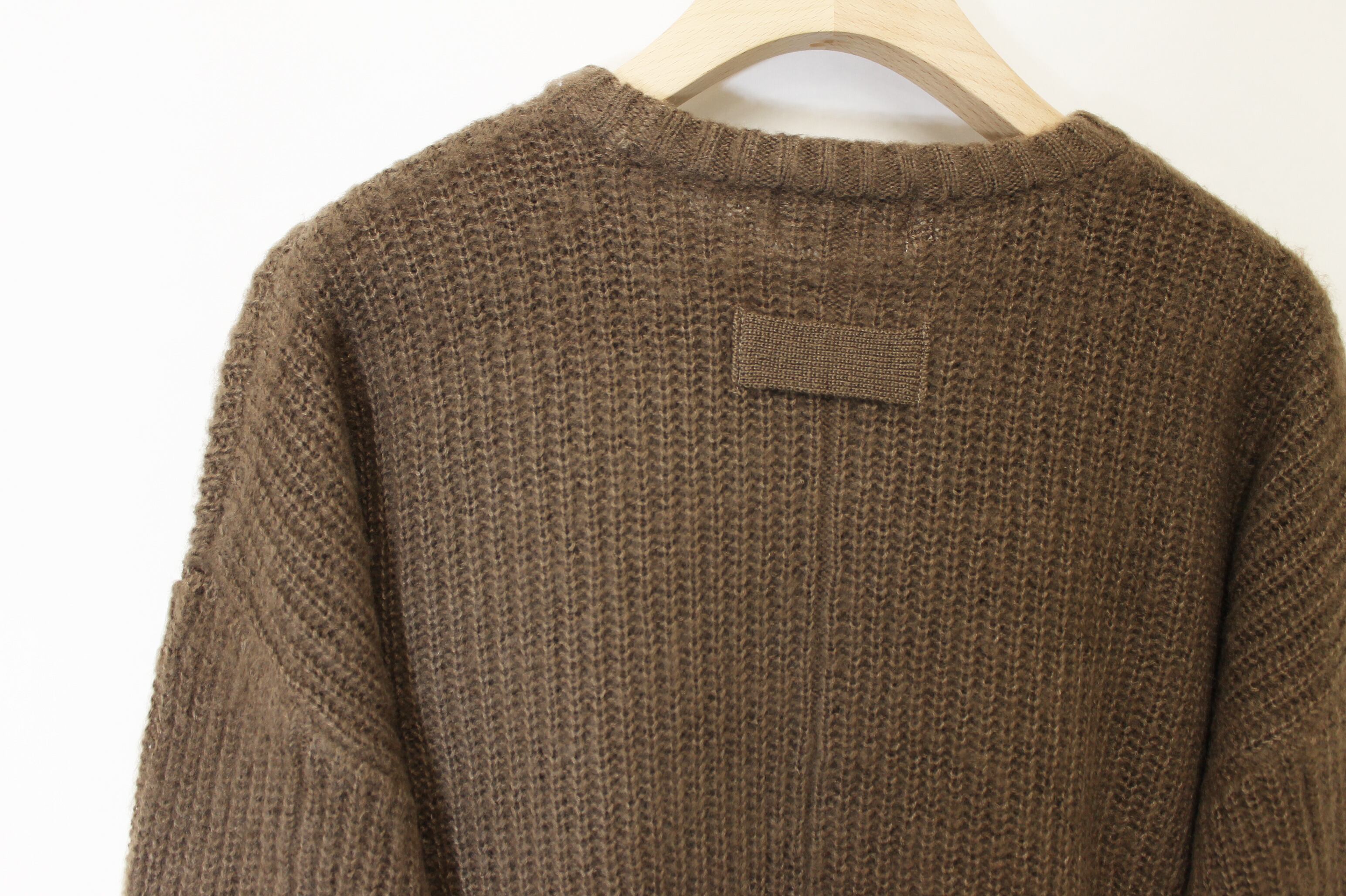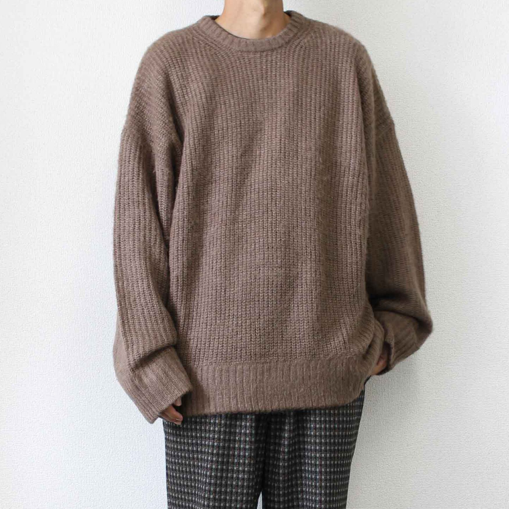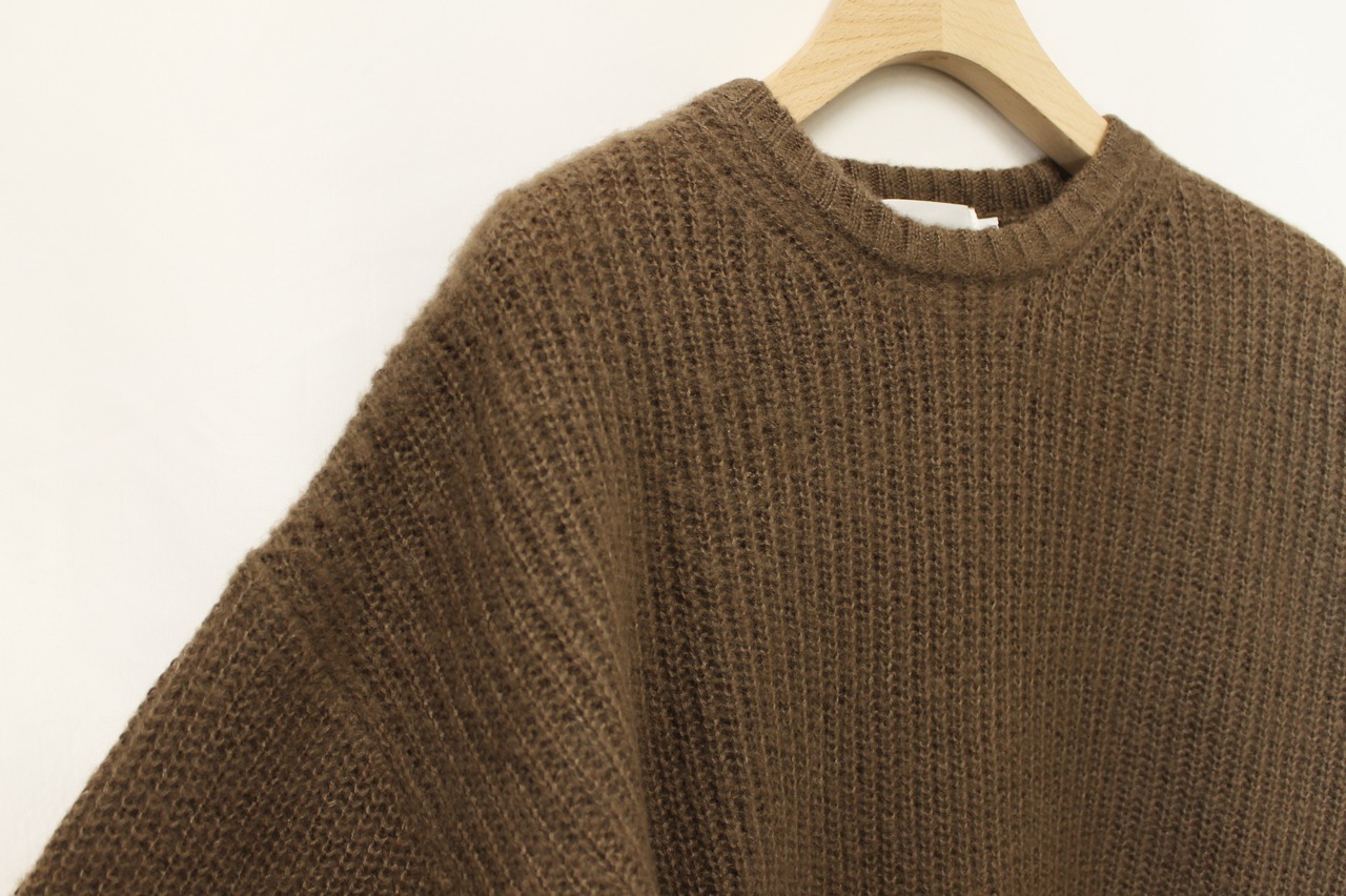 アクリルの軽く柔らかな糸を採用し、モヘア風に加工したクルーネックニット。