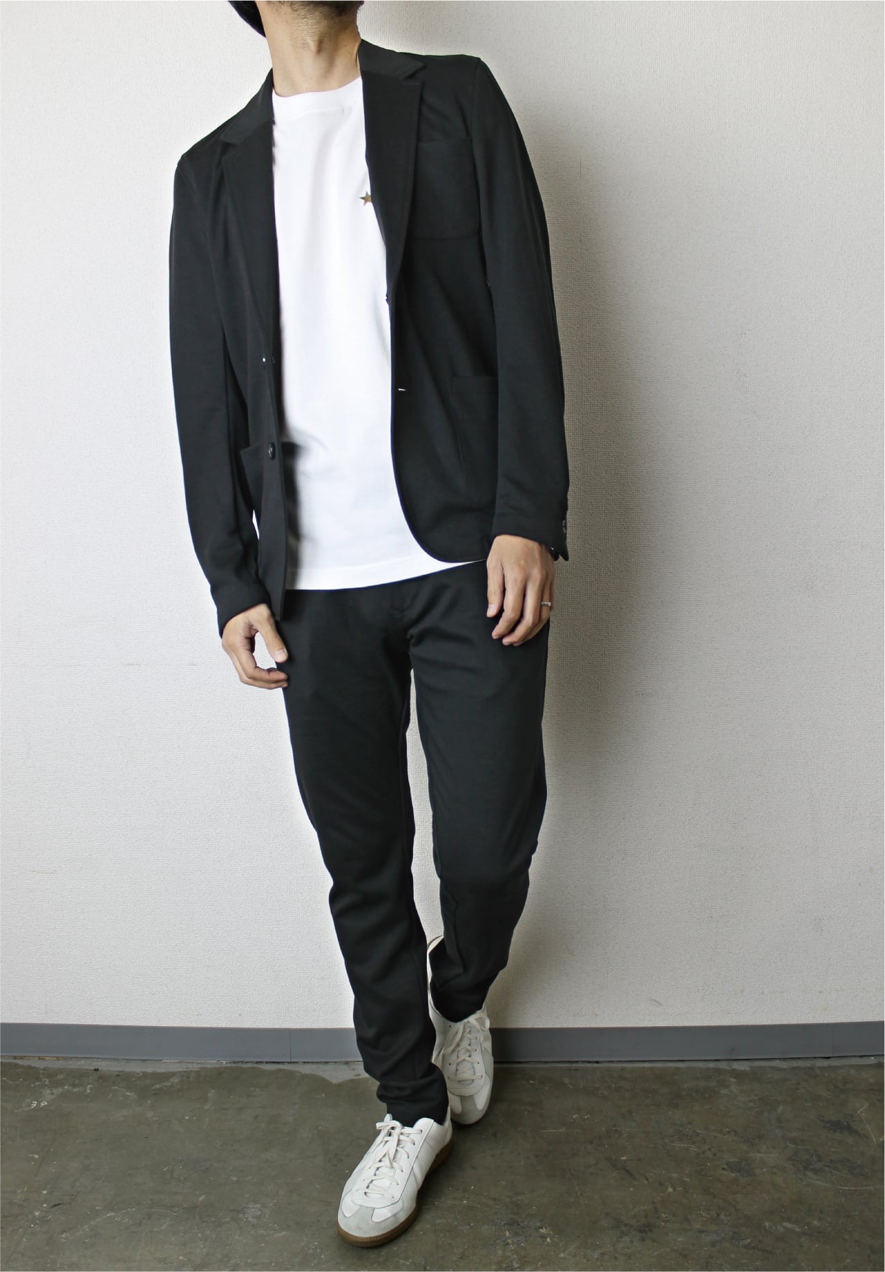 LiSS定番のストレッチジャージテーラードジャケット。年中着まわせるストレッチジャージ素材を使用しています。